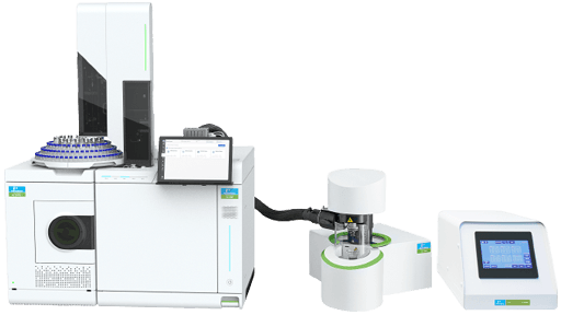 The ability to detect very low levels of material (known and unknown) in complex mixtures makes the TG-GC/MS a powerful tool for quality control, safety, and product development. Heating a sample on the TGA causes a sample to release volatile materials and/or generate gaseous components upon decomposition. These gases are then transferred via a high-fidelity heated transfer system to the GC, where the components can be collected on a trapping media, in a gas sampling loop, or deposited on the head of a column. The sample can then be run by GC to separate the material, and the peaks identified by the MS.